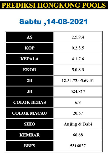 Syair Kampleng Hongkong Sabtu 14 Agustus 2021 KAMPLENG HK